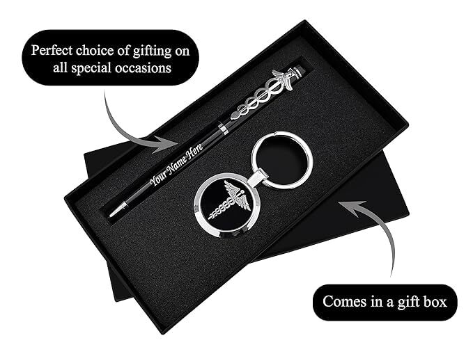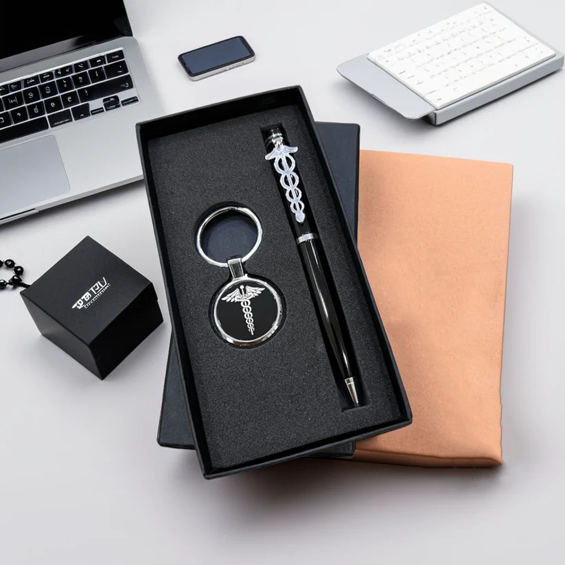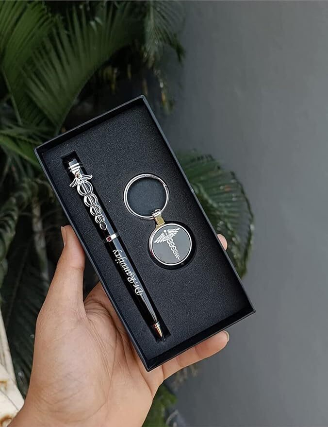 - Doctor-Themed Personalisation: Both the pen and keychain are engraved with the recipient’s name along with a Doctor logo — a fitting tribute to their profession and identity.