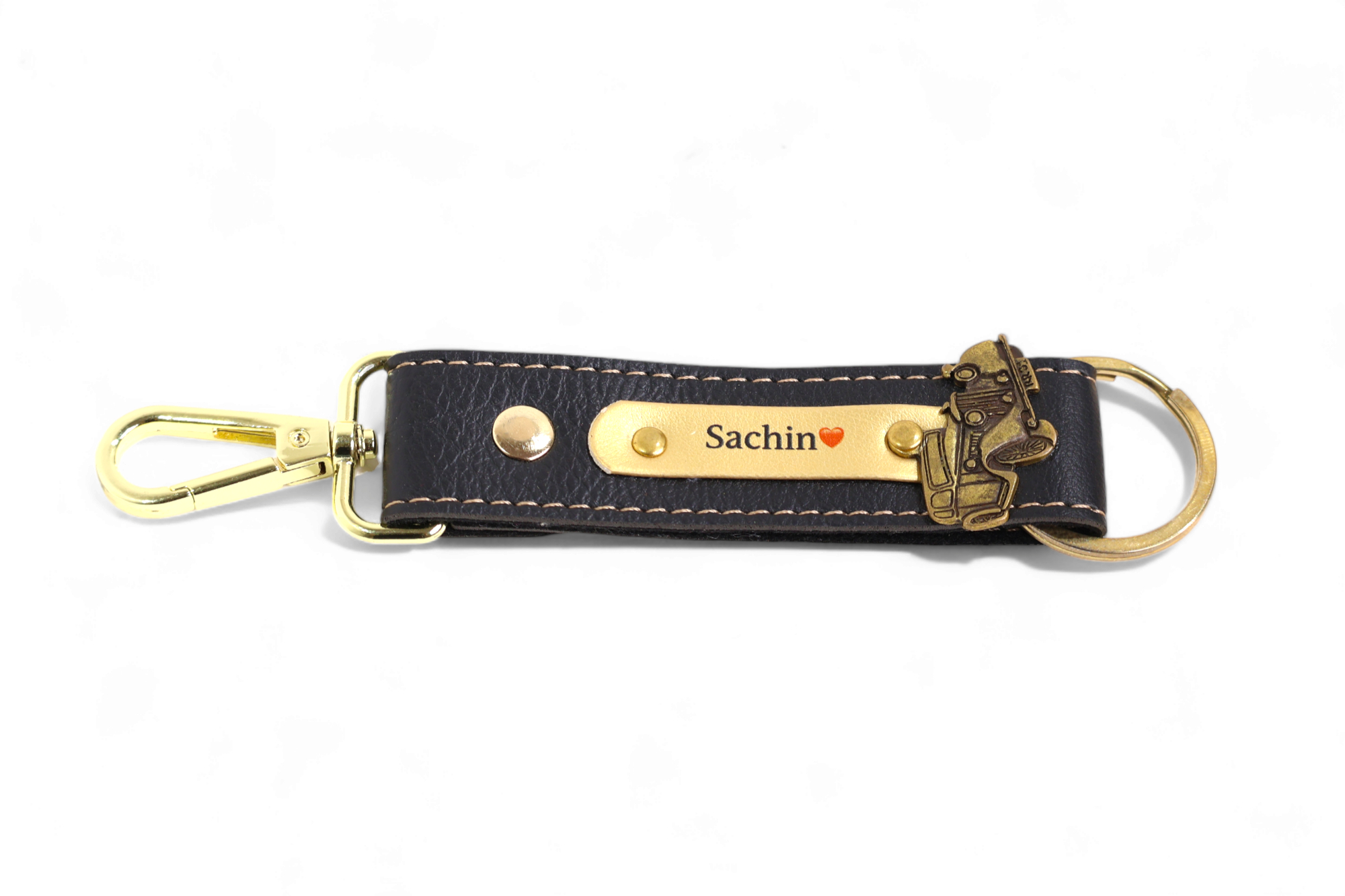 Personalised Leather Keychain – Name & Charm Engraved, 7 Colour Options