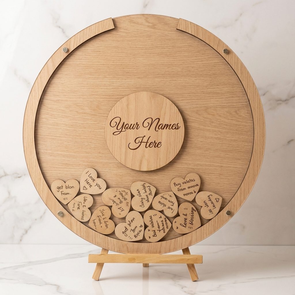 - Interactive Memory-Making Experience: Instead of flipping through a conventional guestbook, guests write heartfelt wishes on wooden heart tokens and drop them in – making the entire experience more personal, fun, and emotionally meaningful for everyone present.